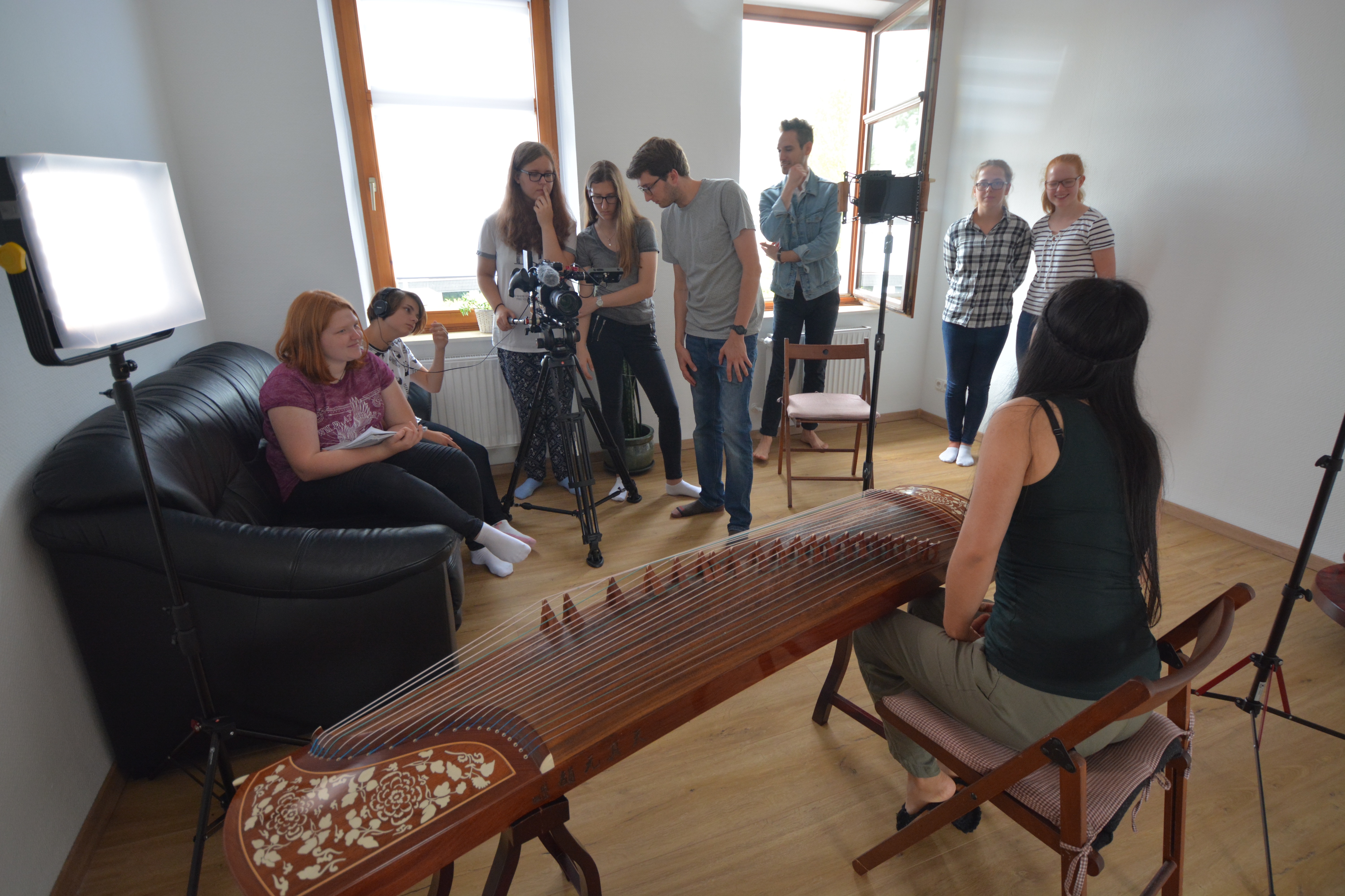 Unser erster Drehtermin führte uns nach Essen-Werden. In den Probenräumen des Duo-Seidenstraße entführten uns Chanyuan Zhao und Benjamin Leuschner mit ihrer Musik in faszinierende Klangwelten. Egal ob die chinesische Wölbbrettzither Guzheng oder das Marimbaphon, es war ein spannender Besuch mit Gänsehautfaktor. Mehr erfahrt ihr demnächst in unserem Videotrailer zum Konzert Le Cinesi.